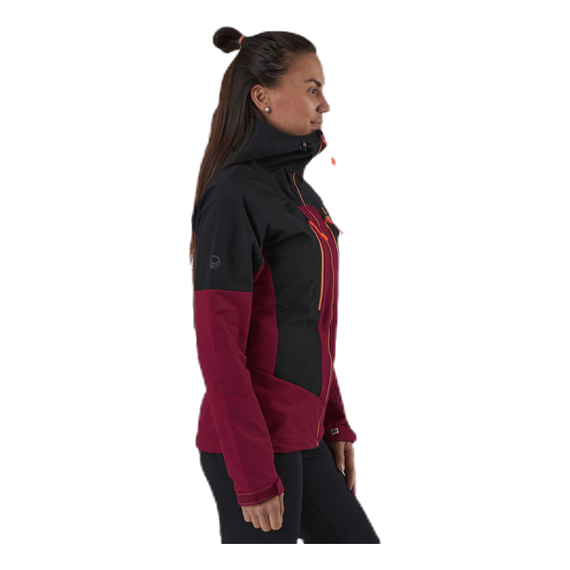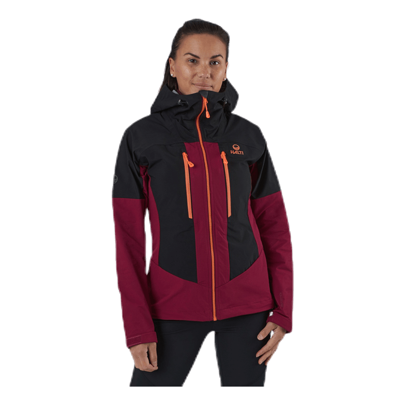 Naisten hybridiulkoilutakki. Huppu ja olkapäät ovat vesitiivistä X-Strech-materiaalia ja sisäpuolen materiaali on harjattu, mikä tarjoaa mukavuutta viileämmässä säässä. Erinomainen takki, joka hengittää ja suojaa kevyeltä sateelta takin ulkokankaan ansiosta. Haltin ECO-tuote, sillä molemmat materiaalit ovat bluesign-sertifioituja ja valmistettu kierrätysmateriaaleista.