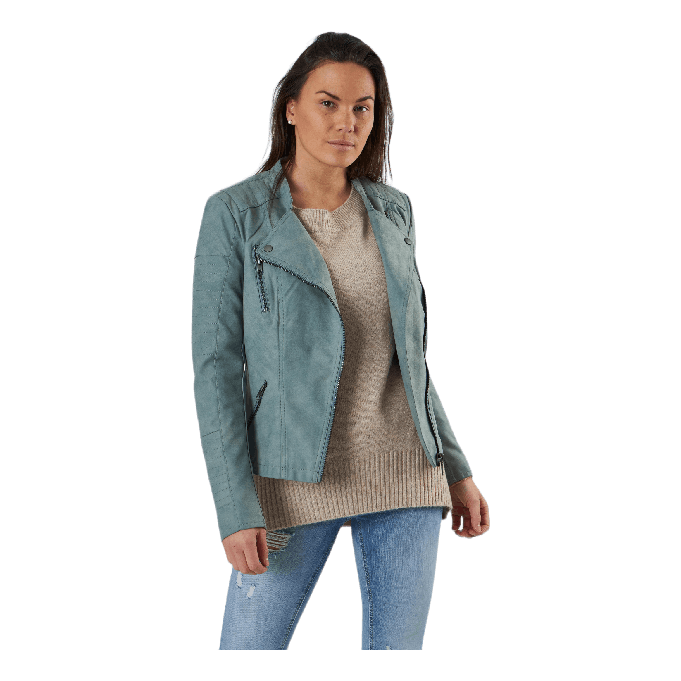 Biker takki merkiltä Only. Muotoiltu, lyhyt malli. Suede jäljitelmä. Vino vetoketju ja nappikiinnitys edessä.