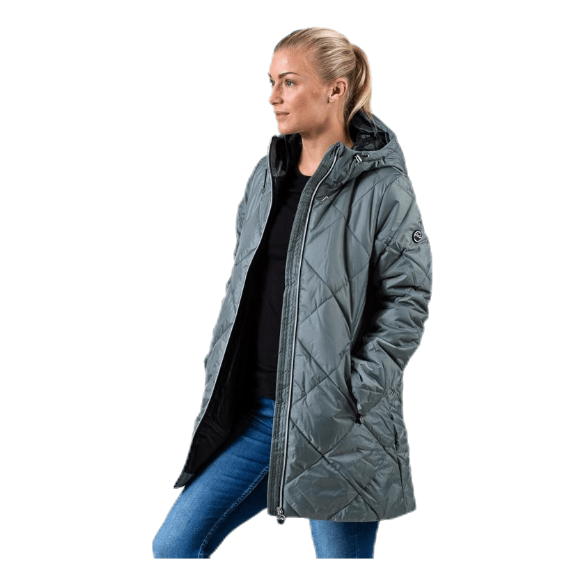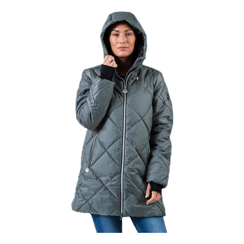 Tyylikäs tikattu takki pidempään malliin, joka pitää sinut lämpimänä ja kuivana koko talven! Takissa on lämpenemismuotoinen tyyny sekä tuulenpitävä ja vettä hylkivä ulkoinen kangas. Kaksisuuntainen vetoketju edessä sujuvaa ilmanvaihtoa varten ja säädettävä vetoketjullinen huppu. Ohuempi joustava sisempi hihansuussa peukalo-aukot. Takin pintakäsittelyssä ei ole ympäristölle vaarallisia fluorihiilivetyjä.