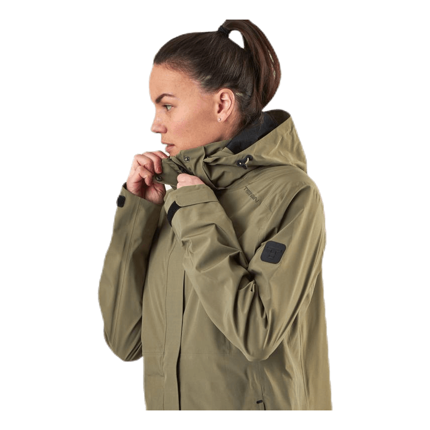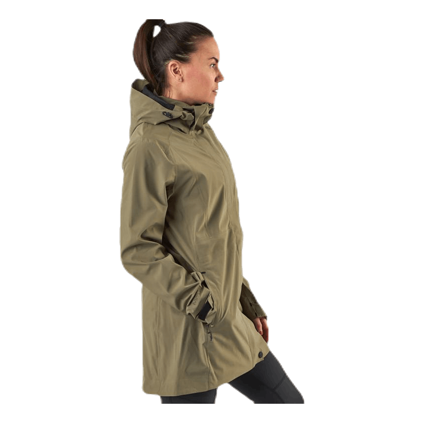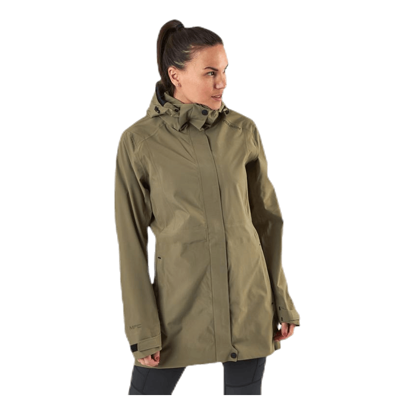Naisten takki tyylikkäällä käytännöllisellä tuulen- ja vedenpitävällä 3-kerroksisella toiminnallisella laadulla. MPC WP 8 000, MP 5 000, PFC-vapaa pinta. 100% polyesteri. Kaksi vetoketjullista etutaskua, teipatut saumat, säädettävä huppu sekä pystysuoraan että vaakasuoraan, kaksisuuntainen etiketju, kaarevat hihat, irrotettava huppu, sisätasku ja säädettävä hihansulkija.
