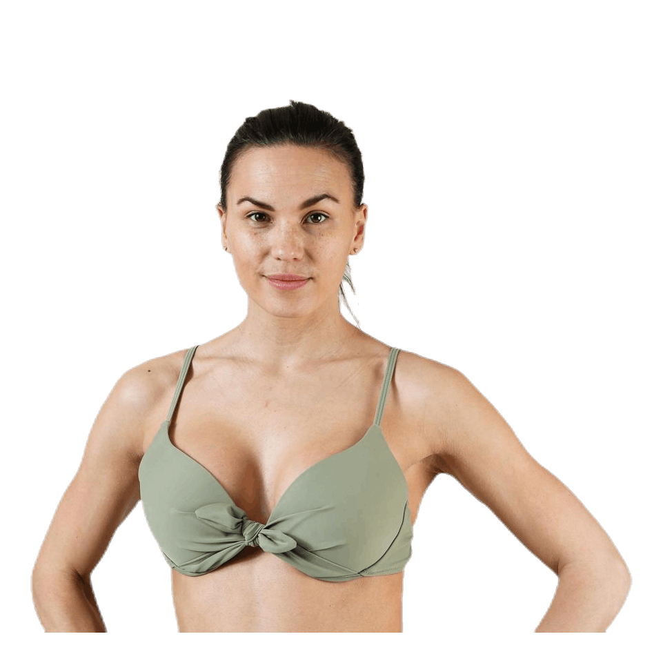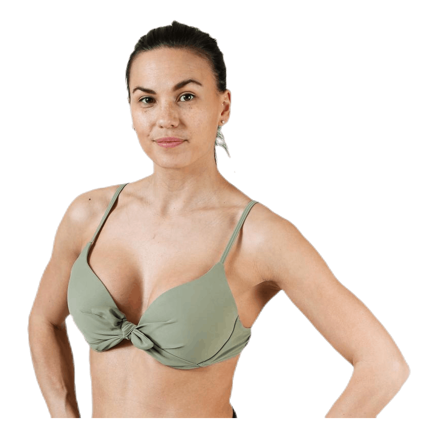 Bikinitoppi push-up-mallisena. Koristeellista twistiä edessä sekä solmurusetti. Kolmiosainen napitus selässä ja säädettävät olkanauhat. Kupit ovat tukevat ja niissä on kiinteät pehmusteet. Yhdistä alaosiin merkiltä WYTE. Materiaali: 82 % polyesteriä, 18 % elastaania.